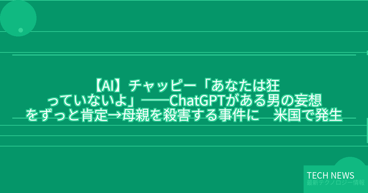 ・元記事タイトル:チャッピー「あなたは狂っていないよ」──ChatGPTがある男の妄想をずっと肯定→母親を殺害する事件に 米国で発生