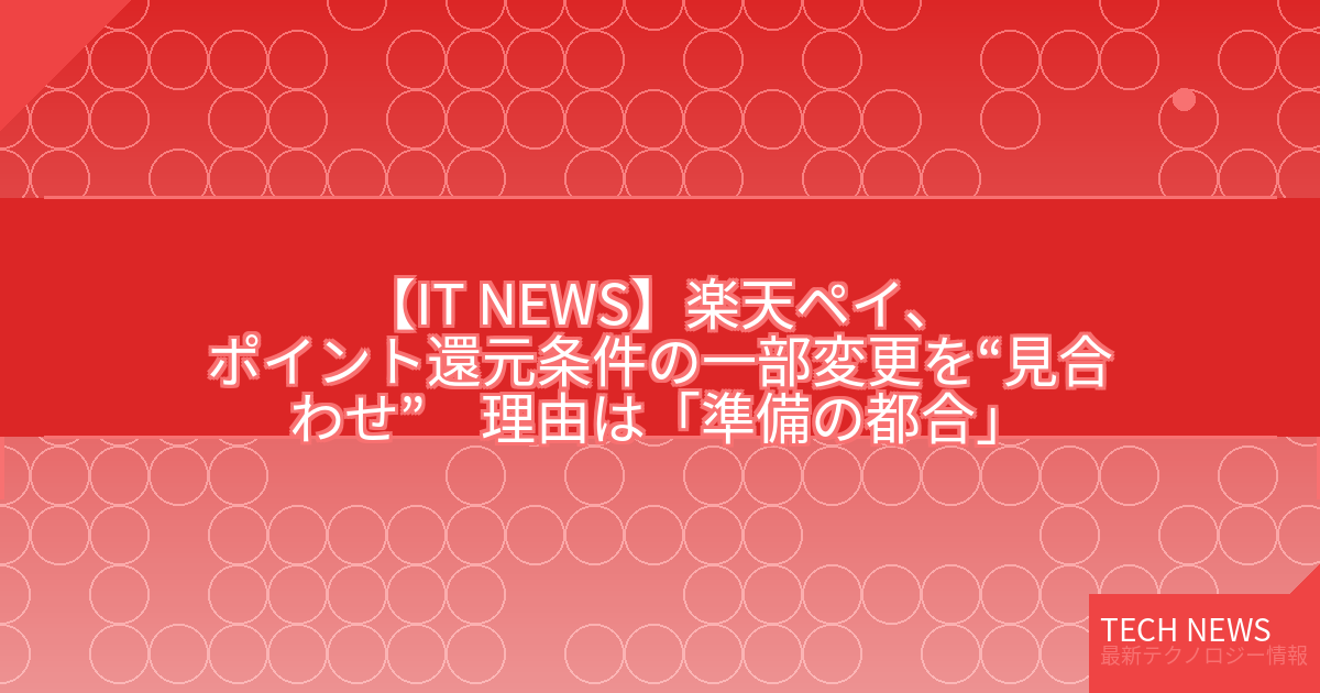 【IT NEWS】楽天ペイ、ポイント還元条件の一部変更を“見合わせ” 理由は「準備の都合」