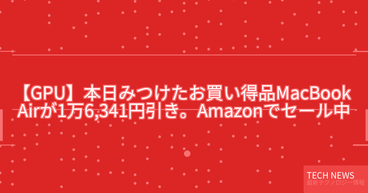【GPU】本日みつけたお買い得品MacBook Airが1万6,341円引き。Amazonでセール中