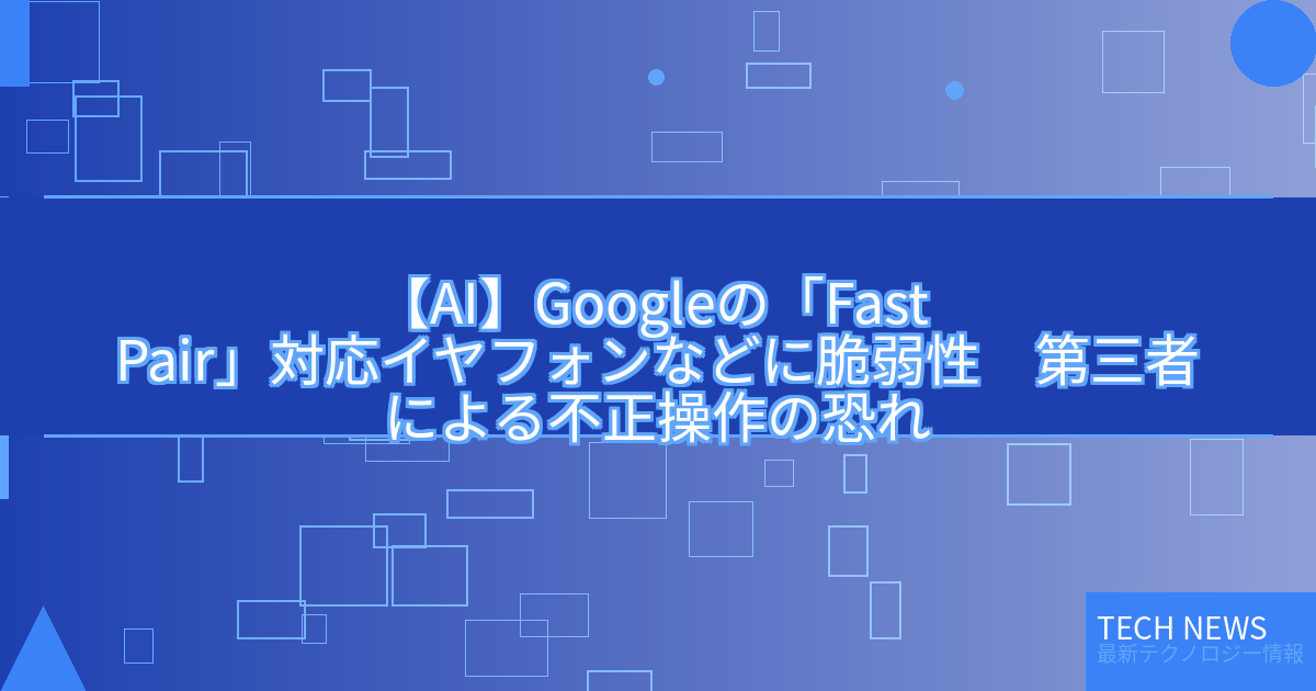 【AI】Googleの「Fast Pair」対応イヤフォンなどに脆弱性 第三者による不正操作の恐れ
