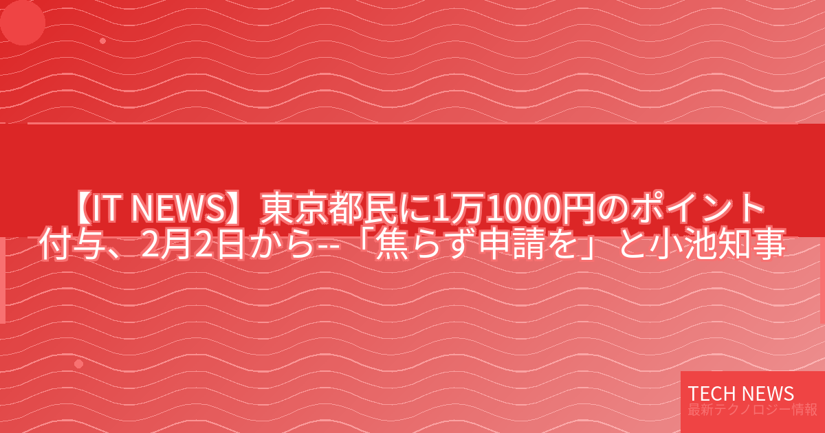 ・元記事タイトル:東京都民に1万1000円のポイント付与、2月2日から–「焦らず申請を」と小池知事