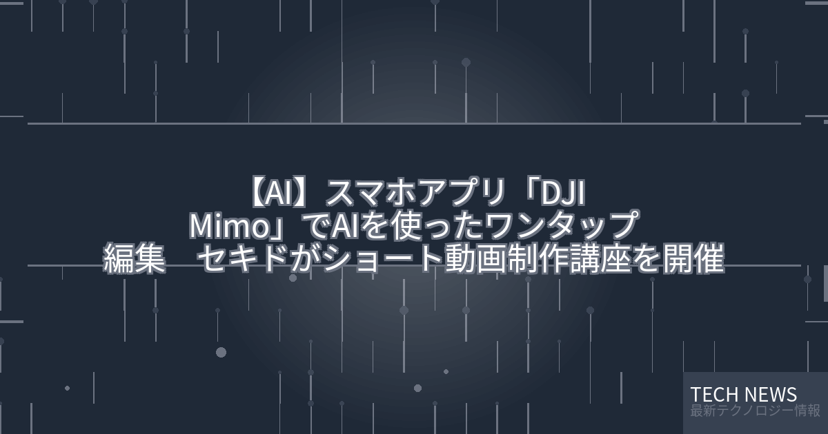 このニュースは、株式会社セキドが開催する「はじめてのAI動画編集セミナー」に関するものです。このセミナーでは、DJIのスマートフォンアプリ「DJI Mimo」を活用したショート動画の制作方法を学ぶことができます。