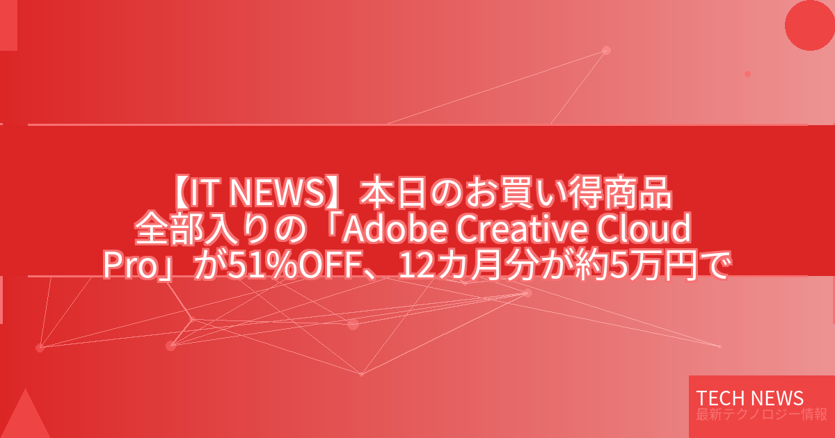 記事タイトル:本日のお買い得商品 全部入りの「Adobe Creative Cloud Pro」が51%OFF、12カ月分が約5万円で