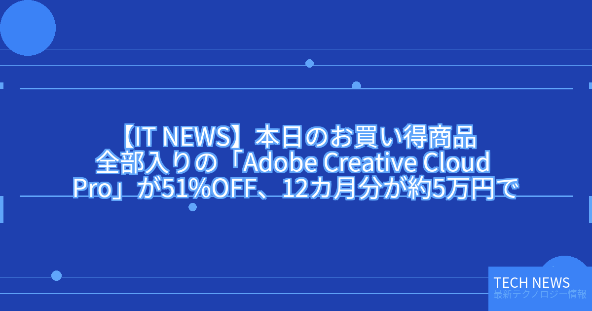 記事タイトル:本日のお買い得商品 全部入りの「Adobe Creative Cloud Pro」が51%OFF、12カ月分が約5万円で