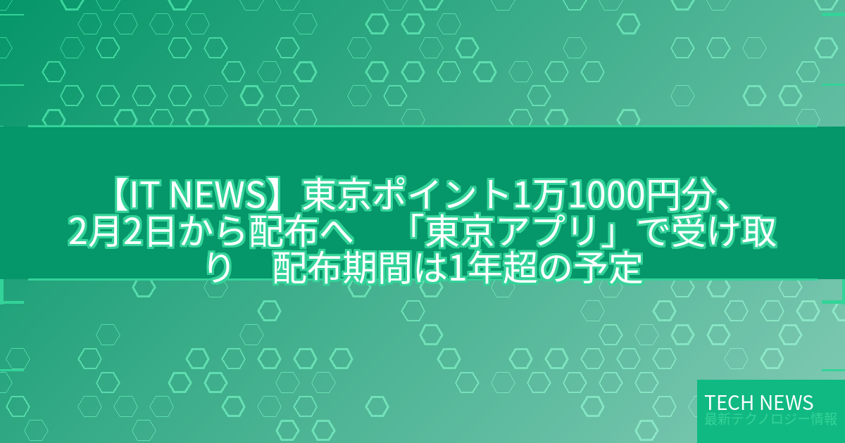 【IT NEWS】東京ポイント1万1000円分、2月2日から配布へ 「東京アプリ」で受け取り 配布期間は1年超の予定