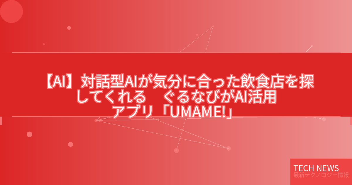 記事タイトル:対話型AIが気分に合った飲食店を探してくれる ぐるなびがAI活用アプリ「UMAME!」