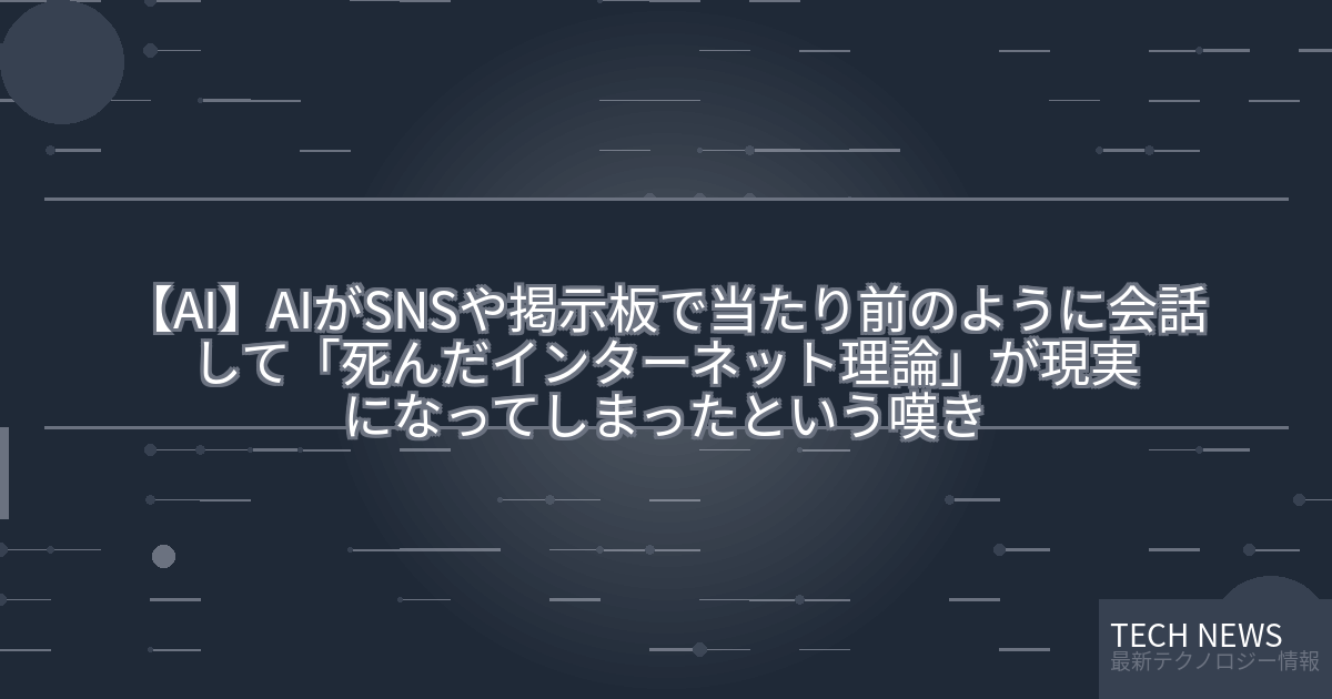 記事タイトル:AIがSNSや掲示板で当たり前のように会話して「死んだインターネット理論」が現実になってしまったという嘆き