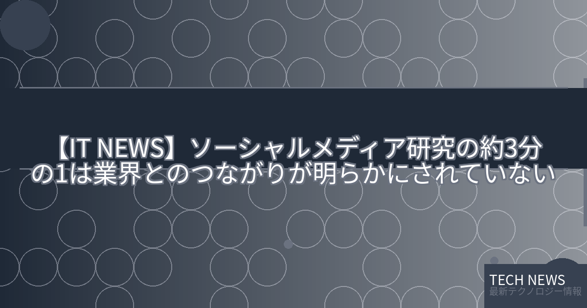 記事タイトル:ソーシャルメディア研究の約3分の1は業界とのつながりが明らかにされていない