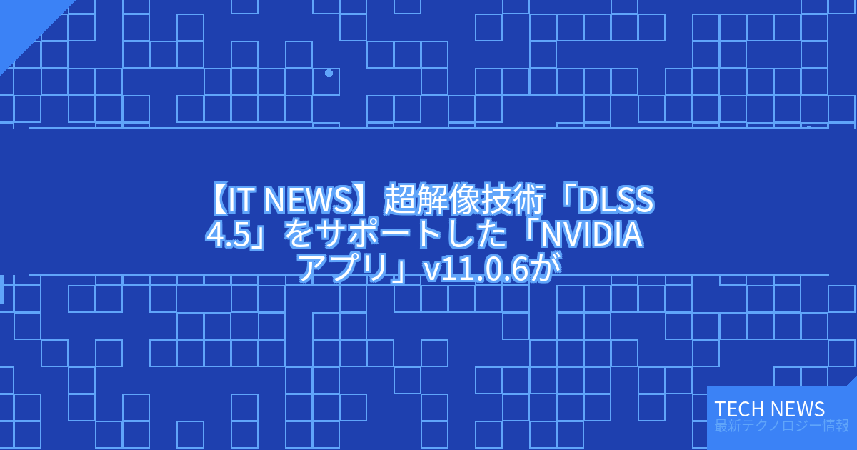 記事タイトル:超解像技術「DLSS 4.5」をサポートした「NVIDIA アプリ」v11.0.6が登場/すべてのオーバークロックや電圧調整を無効化できるデバッグモードも