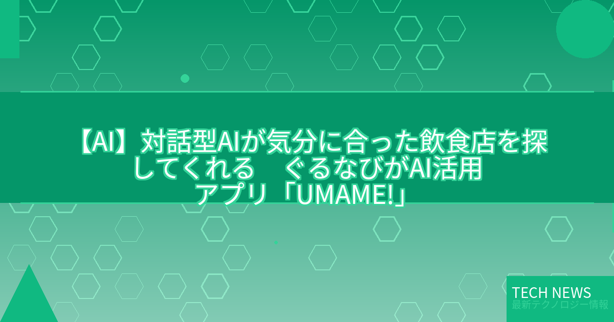 記事タイトル:対話型AIが気分に合った飲食店を探してくれる ぐるなびがAI活用アプリ「UMAME!」