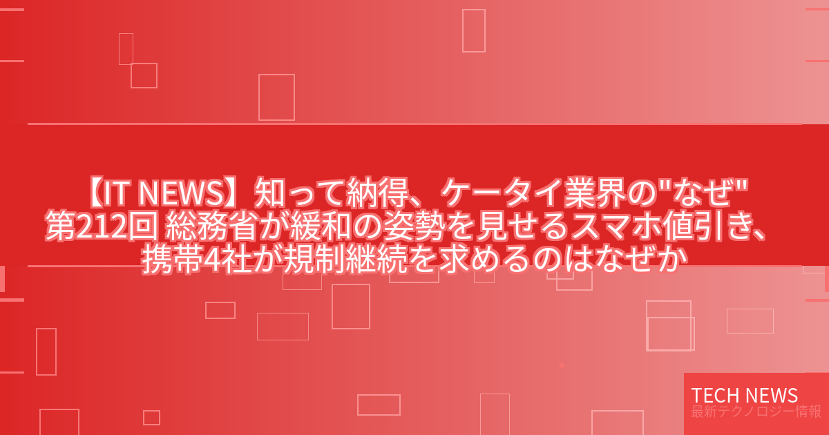 【IT NEWS】知って納得、ケータイ業界の”なぜ” 第212回 総務省が緩和の姿勢を見せるスマホ値引き、携帯4社が規制継続を求めるのはなぜか