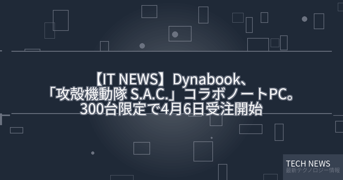 【IT NEWS】Dynabook、「攻殻機動隊 S.A.C.」コラボノートPC。300台限定で4月6日受注開始