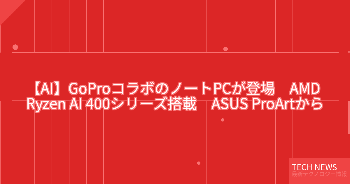 記事タイトル:GoProコラボのノートPCが登場 AMD Ryzen AI 400シリーズ搭載 ASUS ProArtから