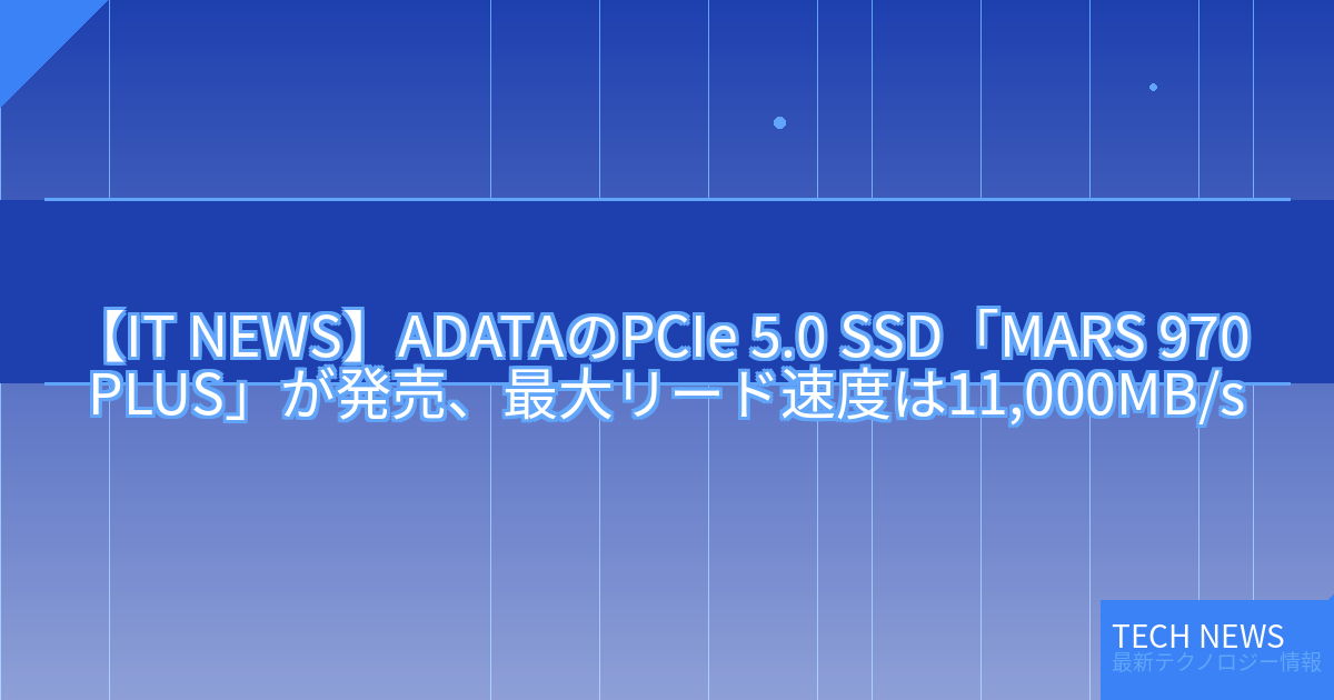 【IT NEWS】ADATAのPCIe 5.0 SSD「MARS 970 PLUS」が発売、最大リード速度は11,000MB/s