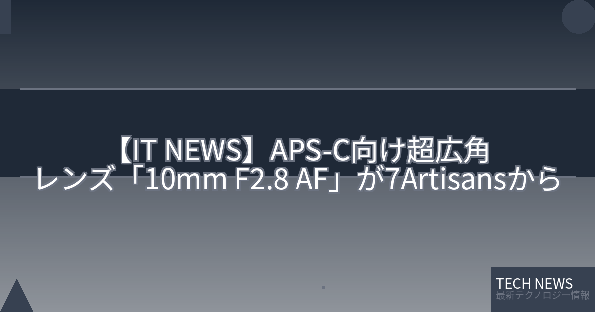 7Artisansは中国のレンズメーカーで、主にミラーレスカメラ用の高性能かつ低価格な交換レンズを提供している。今回発表された「10mm F2.8 AF APS-C」は、APS-Cサイズのセンサーを搭載したミラーレスカメラ向けの超広角レンズだ。超広角レンズは視野角が極端に広く、被写体全体を大きく捉えることができるため、風景撮影や建築物、室内撮影などに適している。