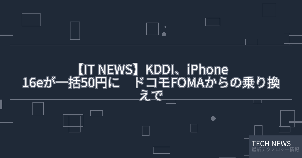 記事タイトル:KDDI、iPhone 16eが一括50円に ドコモFOMAからの乗り換えで