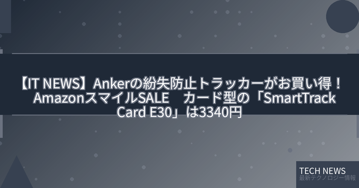 記事タイトル:Ankerの紛失防止トラッカーがお買い得! AmazonスマイルSALE カード型の「SmartTrack Card E30」は3340円