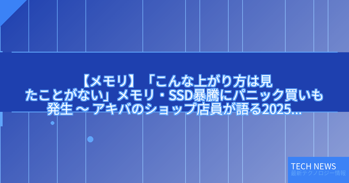 記事タイトル:「こんな上がり方は見たことがない」メモリ・SSD暴騰にパニック買いも発生 ~ アキバのショップ店員が語る2025年 その7 ~