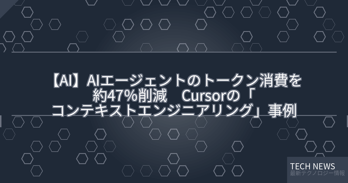 記事タイトル:AIエージェントのトークン消費を約47%削減 Cursorの「コンテキストエンジニアリング」事例