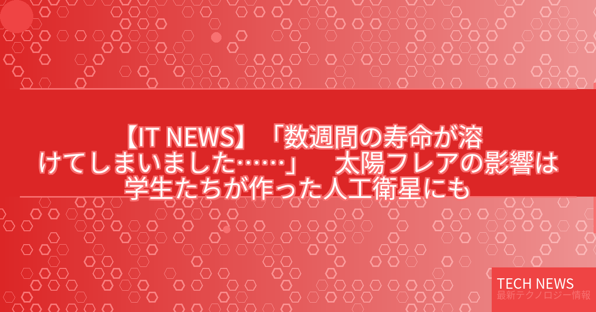 記事タイトル:「数週間の寿命が溶けてしまいました……」 太陽フレアの影響は学生たちが作った人工衛星にも