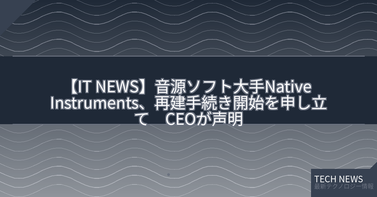 音源ソフト大手・独Native Instrumentsのニック・ウィリアムズCEOが、同社やその持ち株会社3社が、ドイツにおいて事業の再建手続き開始を申し立てたと発表した。Native Instrumentsを巡っては、予備的な破産手続きに入った可能性を現地メディアが報道。記事はXを通して日本でも拡散し、音楽業界に波紋を呼んでいた。