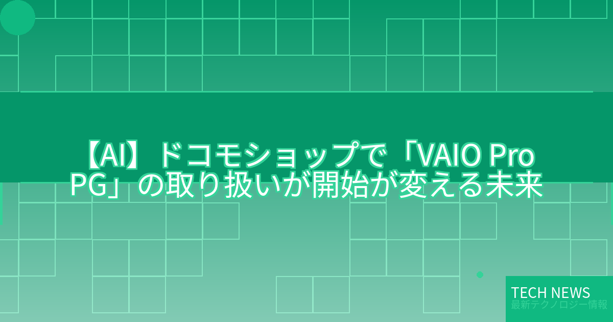 ドコモが新たに取り扱いを開始するVAIO Pro PGは、AIテクノロジーを積極的に採用したモバイルノートPCです。このノートPCの注目ポイントは、AIを活用した高度な機能と優れたパフォーマンスにあります。