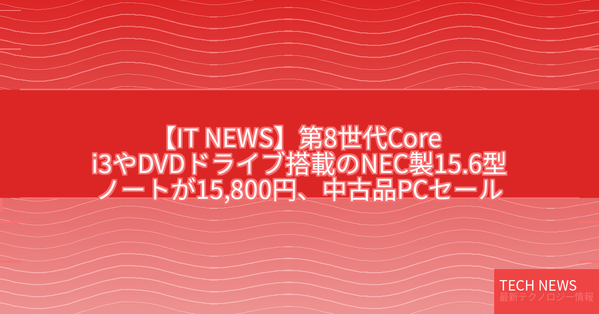 記事タイトル:第8世代Core i3やDVDドライブ搭載のNEC製15.6型ノートが15,800円、中古品PCセール