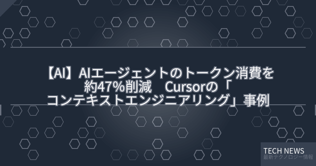 【AI】AIエージェントのトークン消費を約47%削減 Cursorの「コンテキストエンジニアリング」事例