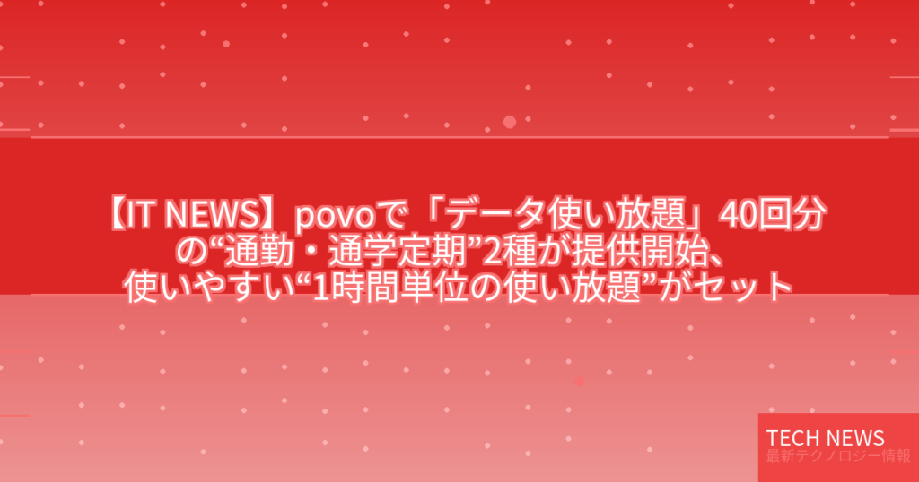 【IT NEWS】povoで「データ使い放題」40回分の“通勤・通学定期”2種が提供開始、使いやすい“1時間単位の使い放題”がセット
