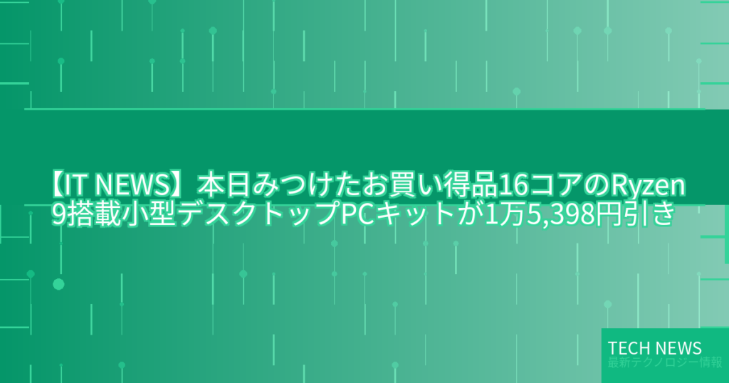 【IT NEWS】本日みつけたお買い得品16コアのRyzen 9搭載小型デスクトップPCキットが1万5,398円引き