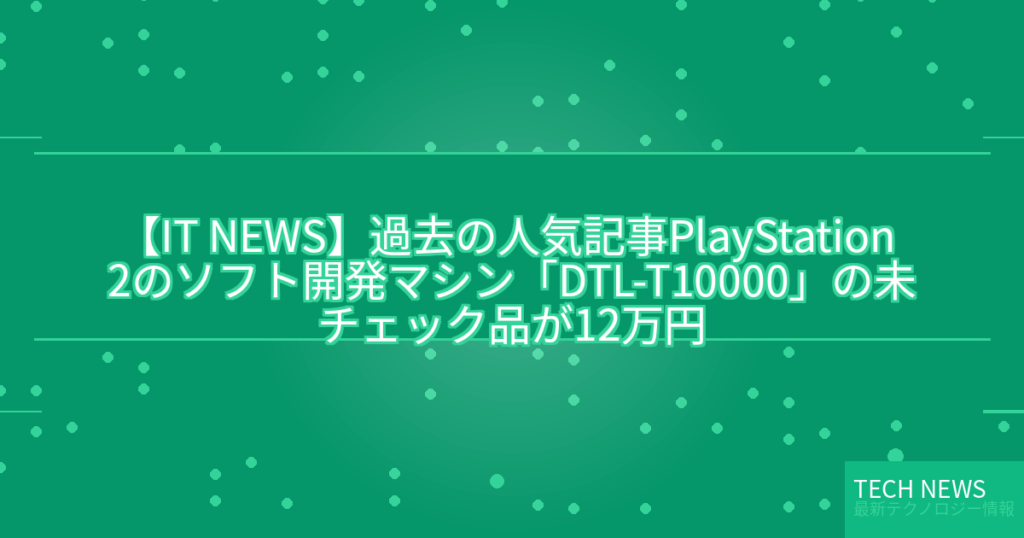 【IT NEWS】過去の人気記事PlayStation 2のソフト開発マシン「DTL-T10000」の未チェック品が12万円
