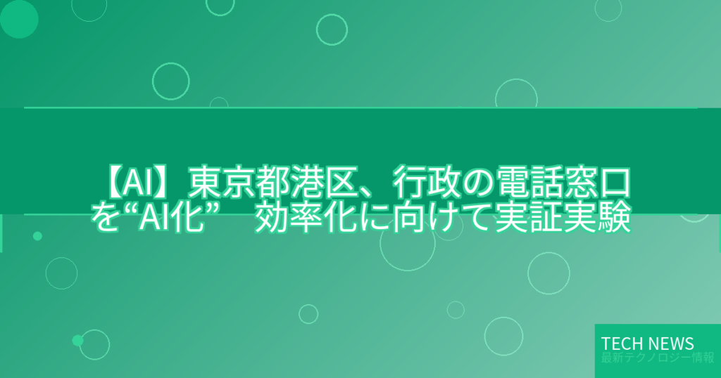 東京都港区は、行政への電話問い合わせにAIが応答し、必要に応じて職員に引き継ぐシステムの実証実験を開始した。住民手続案内の迅速化と業務負担軽減を図り、将来の本格導入を見据える。 -