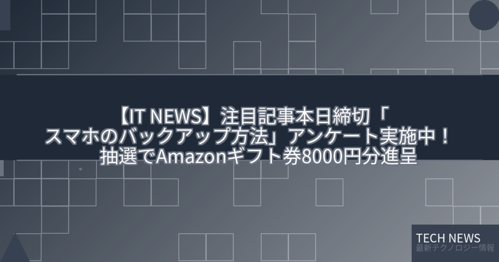 【IT NEWS】注目記事本日締切「スマホのバックアップ方法」アンケート実施中! 抽選でAmazonギフト券8000円分進呈