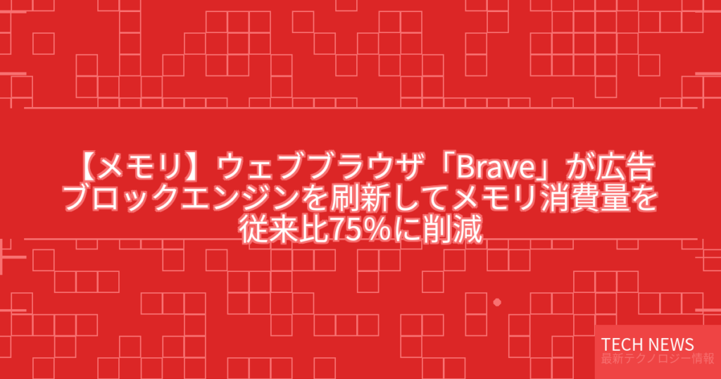 【メモリ】ウェブブラウザ「Brave」が広告ブロックエンジンを刷新してメモリ消費量を従来比75%に削減