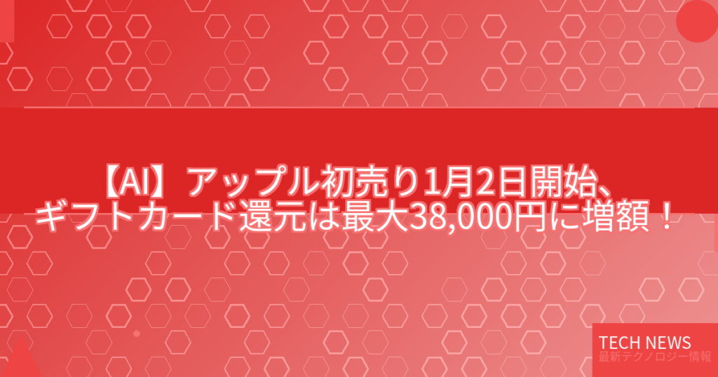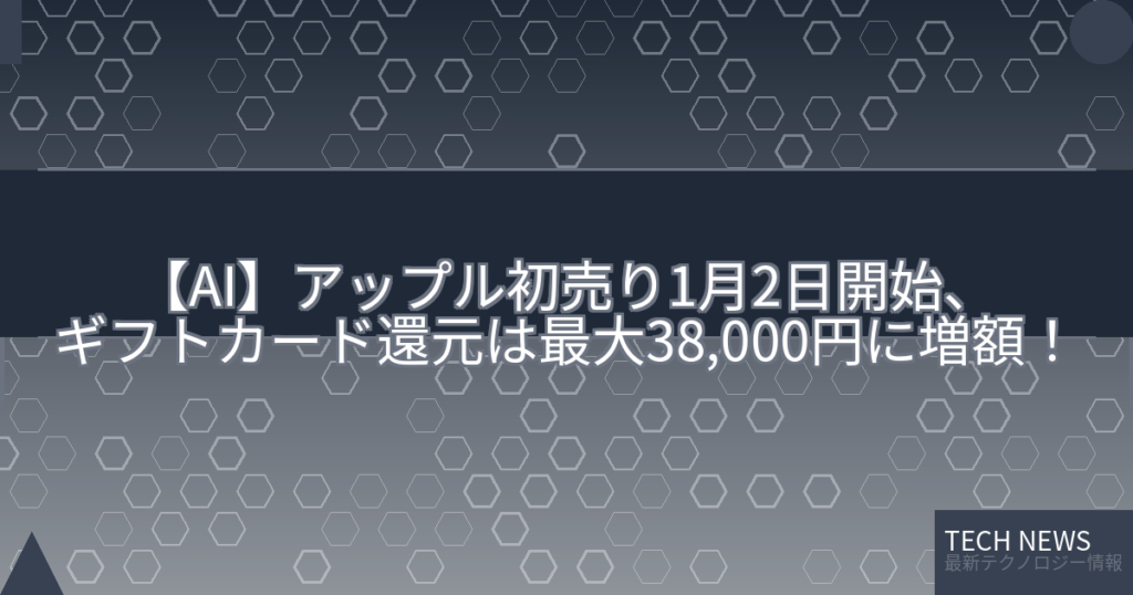 【AI】アップル初売り1月2日開始、ギフトカード還元は最大38,000円に増額!