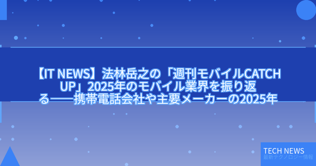【IT NEWS】法林岳之の「週刊モバイルCATCH UP」2025年のモバイル業界を振り返る――携帯電話会社や主要メーカーの2025年はどうだったか? 2026年はどうなる?