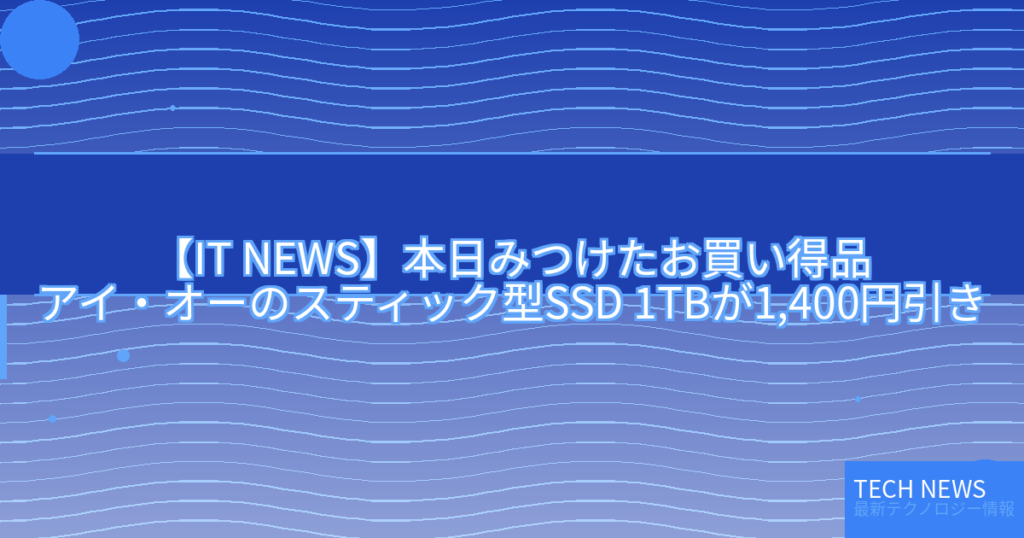 【IT NEWS】本日みつけたお買い得品アイ・オーのスティック型SSD 1TBが1,400円引き