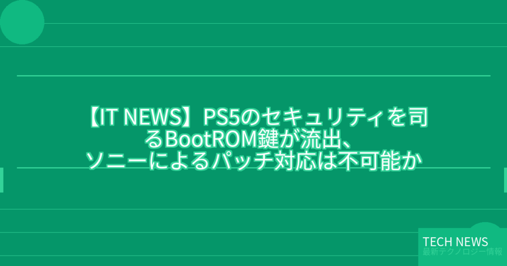【IT NEWS】PS5のセキュリティを司るBootROM鍵が流出、ソニーによるパッチ対応は不可能か