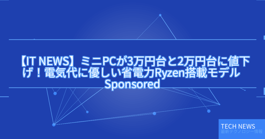 【IT NEWS】ミニPCが3万円台と2万円台に値下げ!電気代に優しい省電力Ryzen搭載モデル Sponsored
