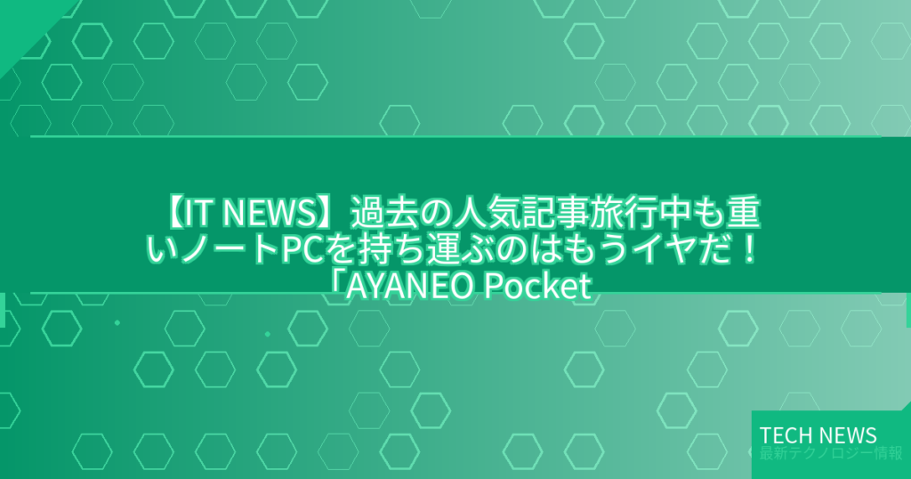【IT NEWS】過去の人気記事旅行中も重いノートPCを持ち運ぶのはもうイヤだ!「AYANEO Pocket EVO」で業務とゲームを両立できるかを試すできることの幅は思ったより広く期待以上の満足感!? text by 竹内 亮介