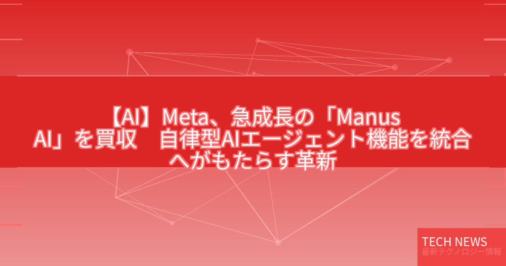 【AI】Meta、急成長の「Manus AI」を買収 自律型AIエージェント機能を統合へがもたらす革新