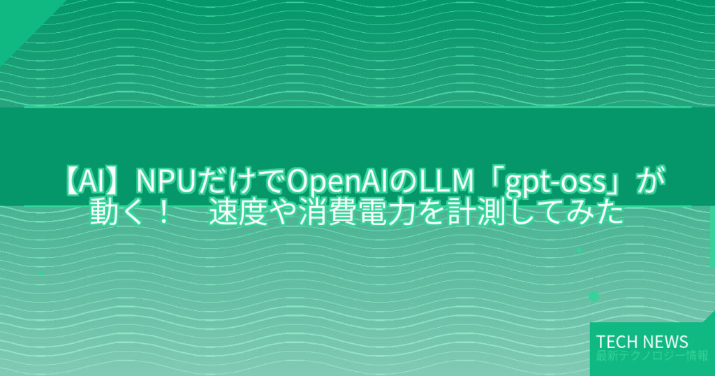 【AI】NPUだけでOpenAIのLLM「gpt-oss」が動く! 速度や消費電力を計測してみた