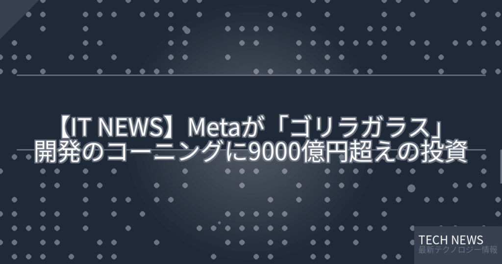 【IT NEWS】Metaが「ゴリラガラス」開発のコーニングに9000億円超えの投資