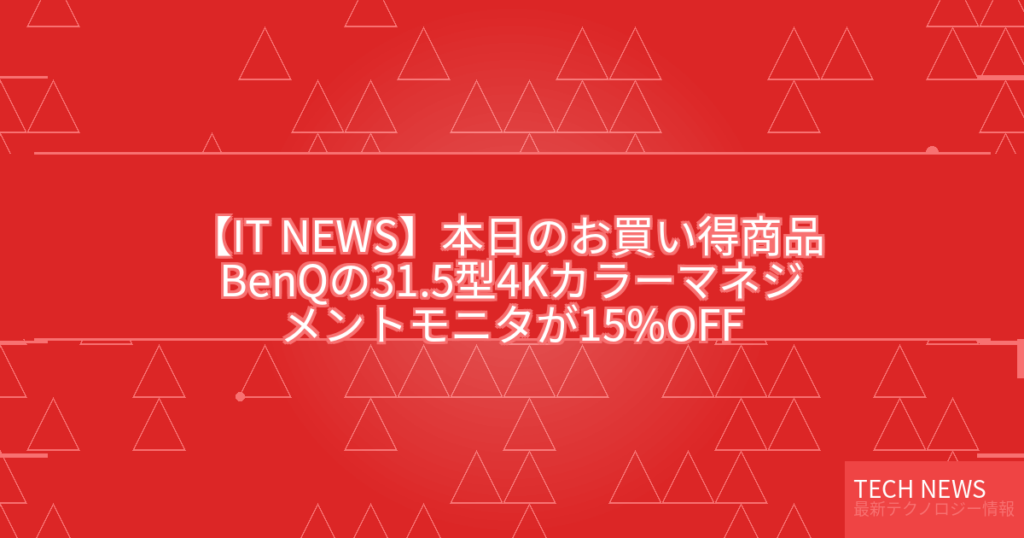 【IT NEWS】本日のお買い得商品 BenQの31.5型4Kカラーマネジメントモニタが15%OFF
