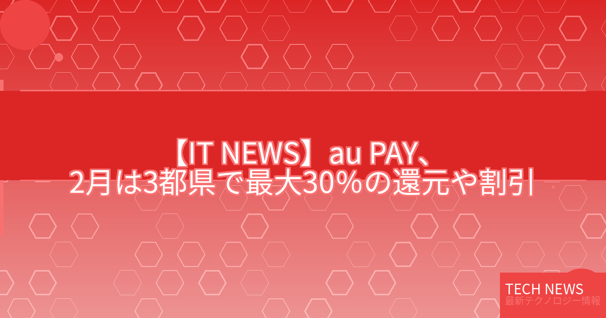 記事タイトル:au PAY、2月は3都県で最大30%の還元や割引