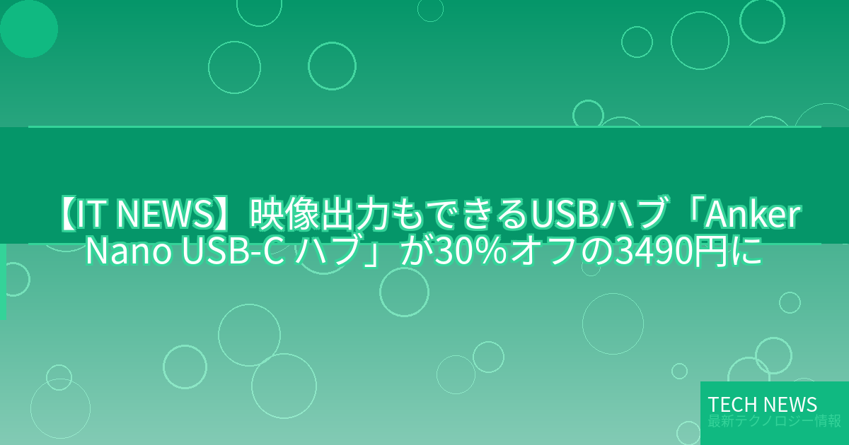 記事タイトル:映像出力もできるUSBハブ「Anker Nano USB-C ハブ」が30%オフの3490円に
