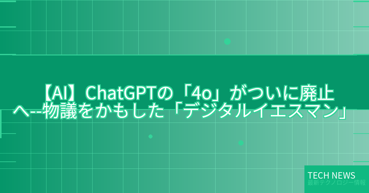 記事タイトル:ChatGPTの「4o」がついに廃止へ–物議をかもした「デジタルイエスマン」