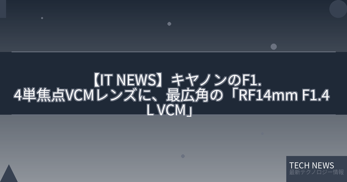 記事タイトル:キヤノンのF1.4単焦点VCMレンズに、最広角の「RF14mm F1.4 L VCM」