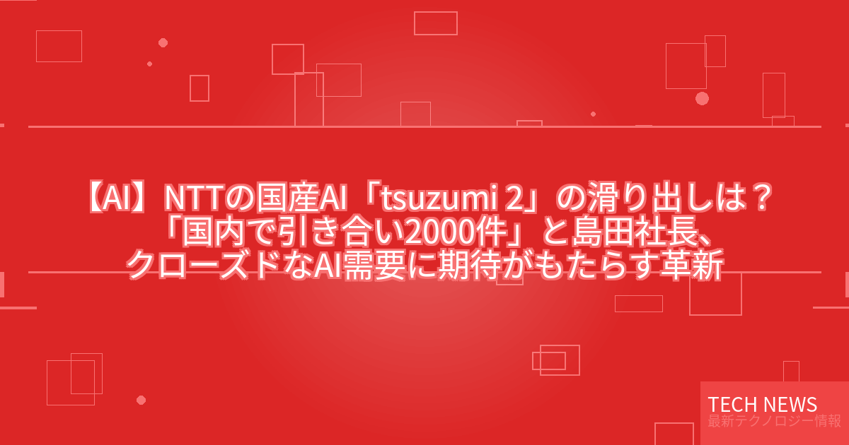 記事タイトル:NTTの国産AI「tsuzumi 2」の滑り出しは? 「国内で引き合い2000件」と島田社長、クローズドなAI需要に期待