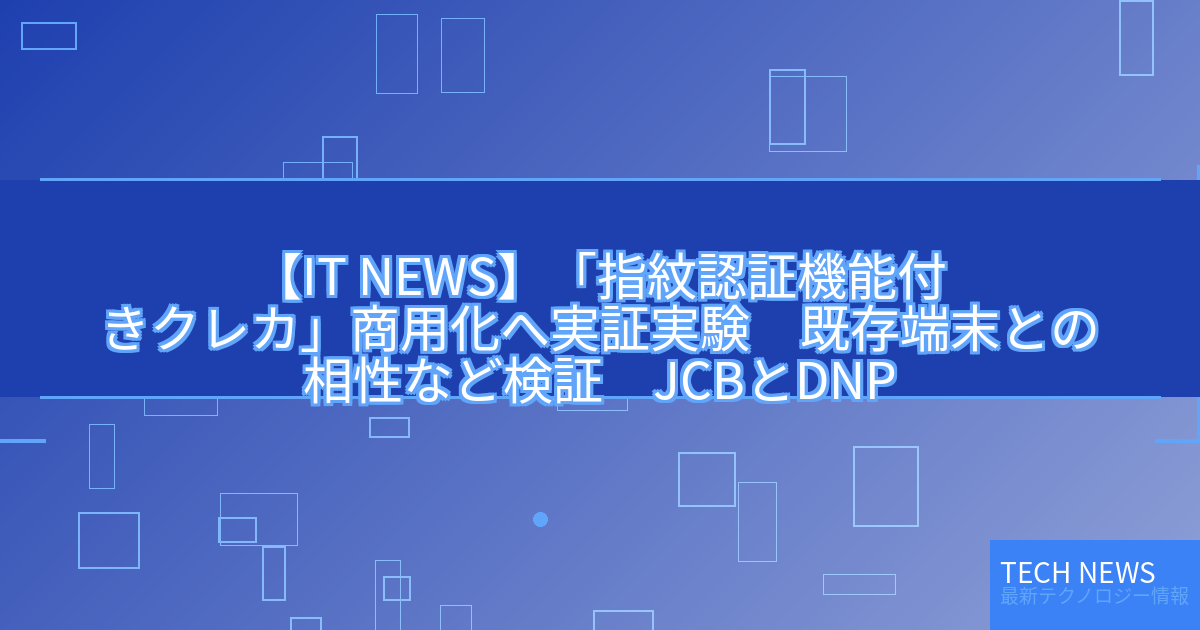 記事タイトル:「指紋認証機能付きクレカ」商用化へ実証実験 既存端末との相性など検証 JCBとDNP